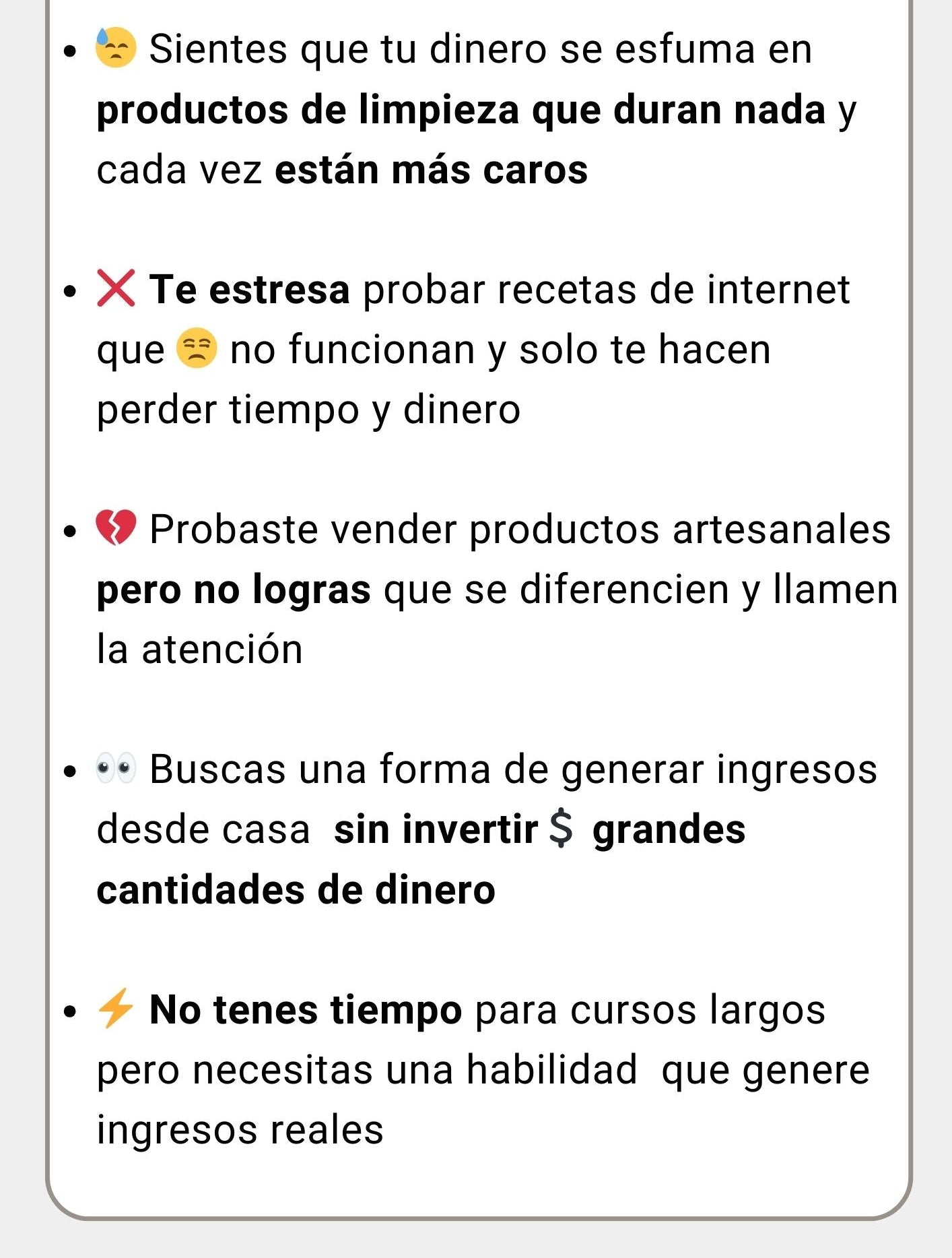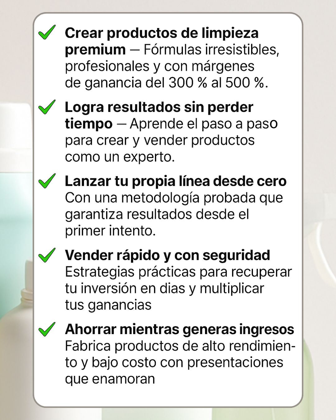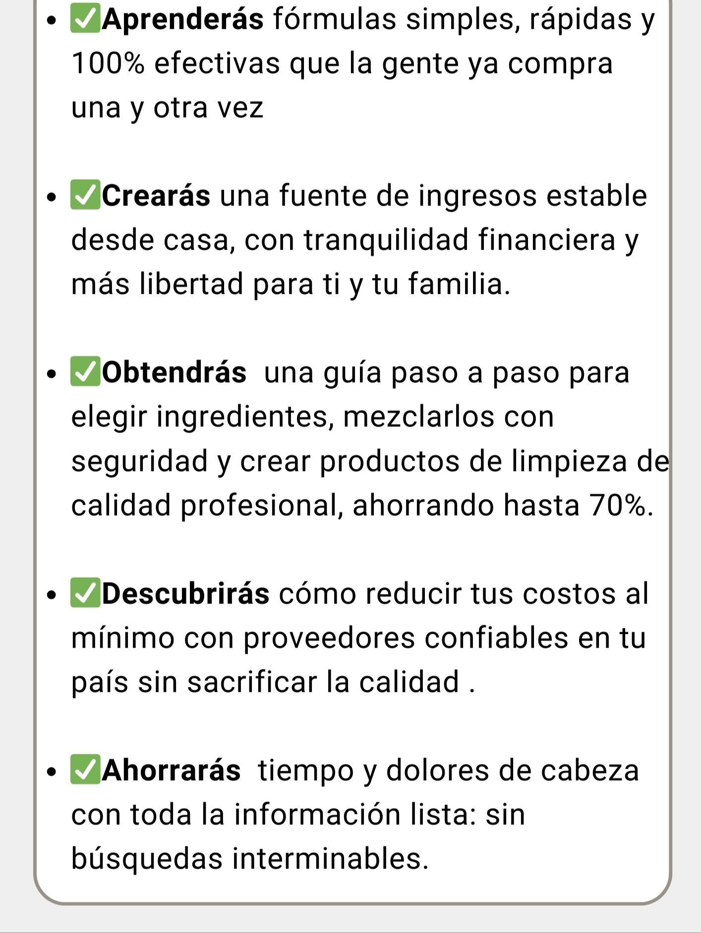 Además, cada fórmula fue seleccionada para que realmente funcione y puedas emprender desde casa con seguridad y confianza. Con este material evitás errores, ahorrás tiempo y empezás más rápido tu negocio rentable.